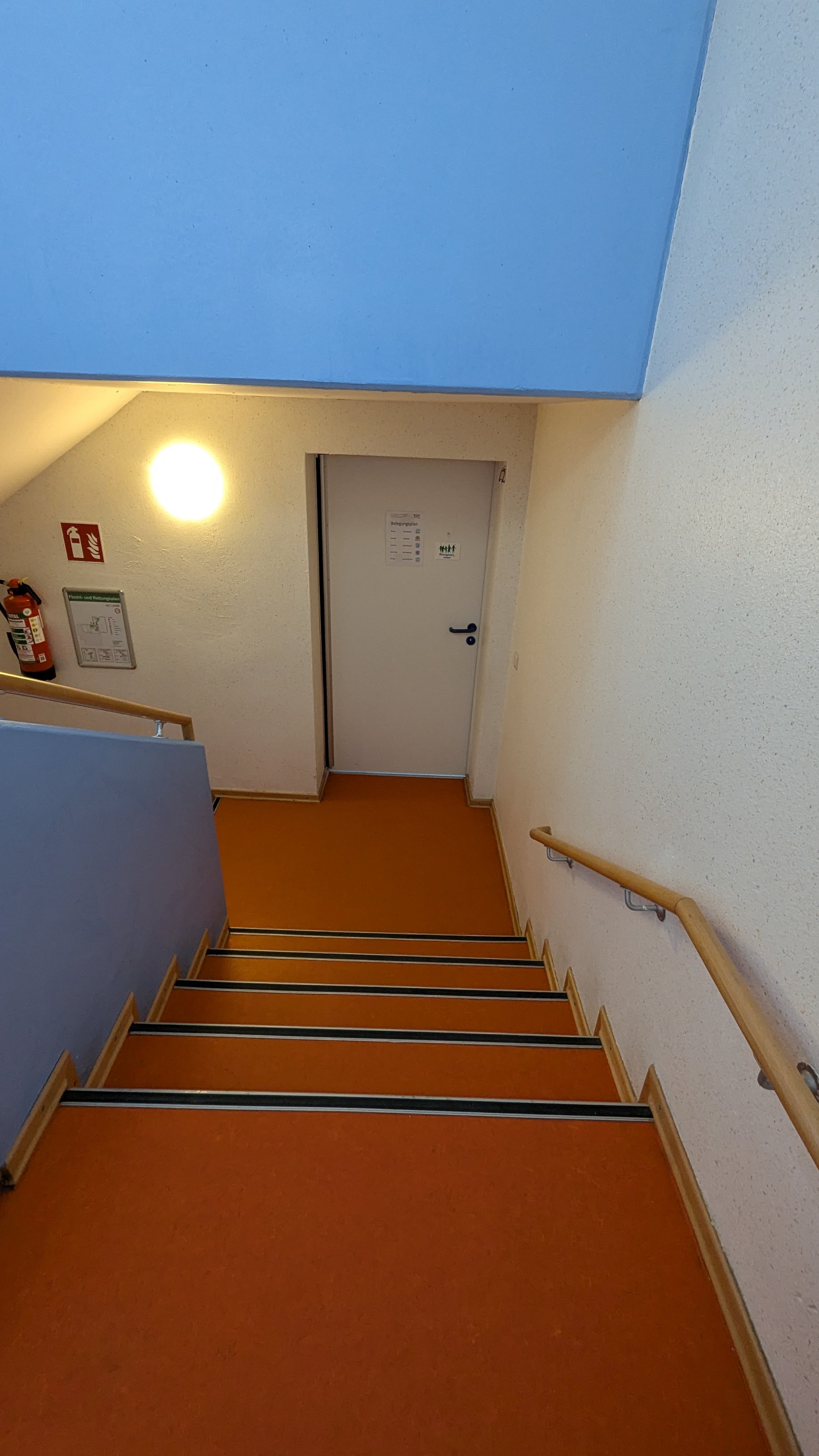 Der Bewegungsraum ist über einen Treppenabgang im Flur erreichbar.