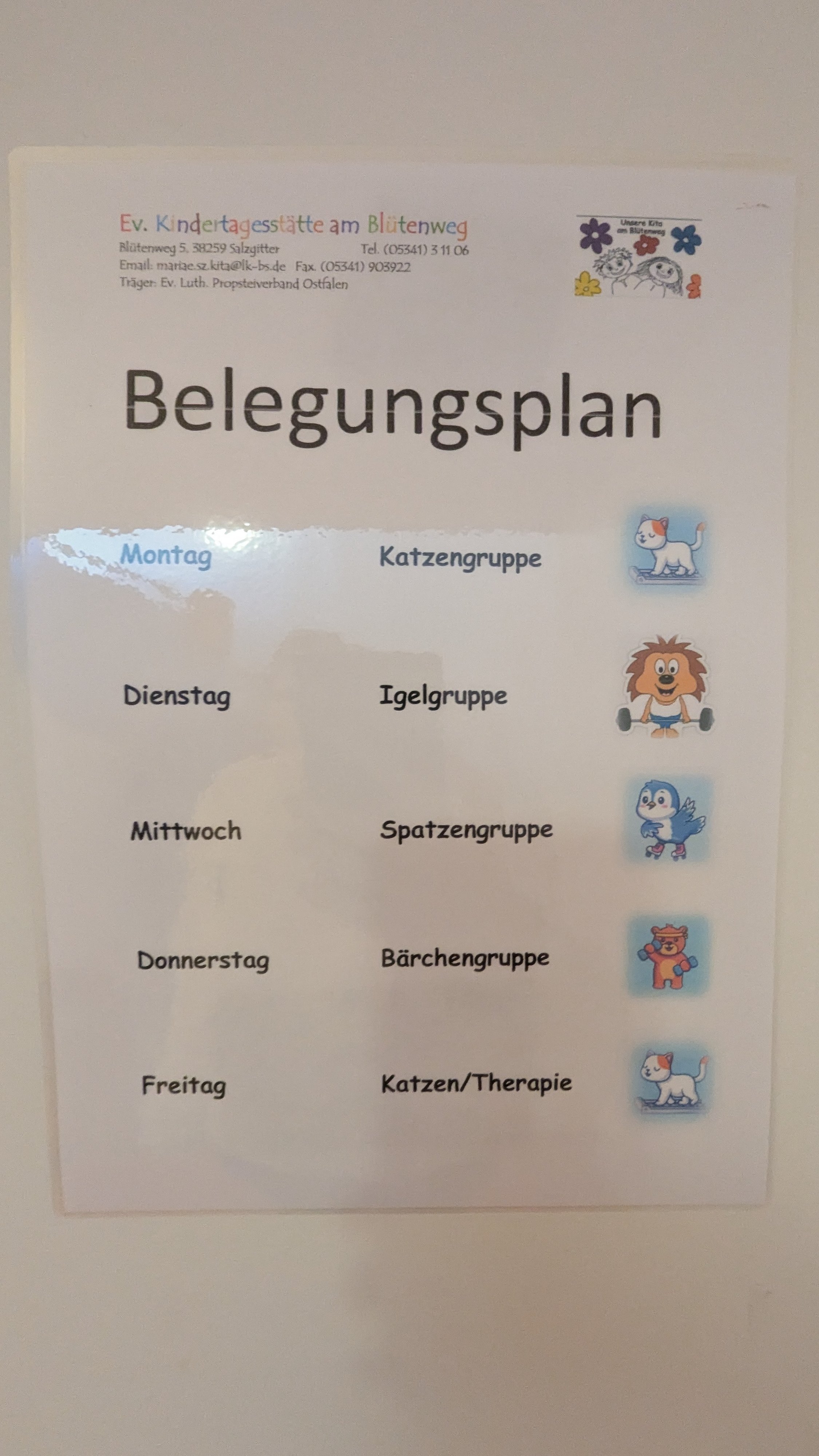 Damit alle Kinder auch die Chance bekommen, den Bewegungsraum zu erleben, gibt es für jede Gruppe einen Tag, an dem sie den Bewegungsraum nutzen dürfen.