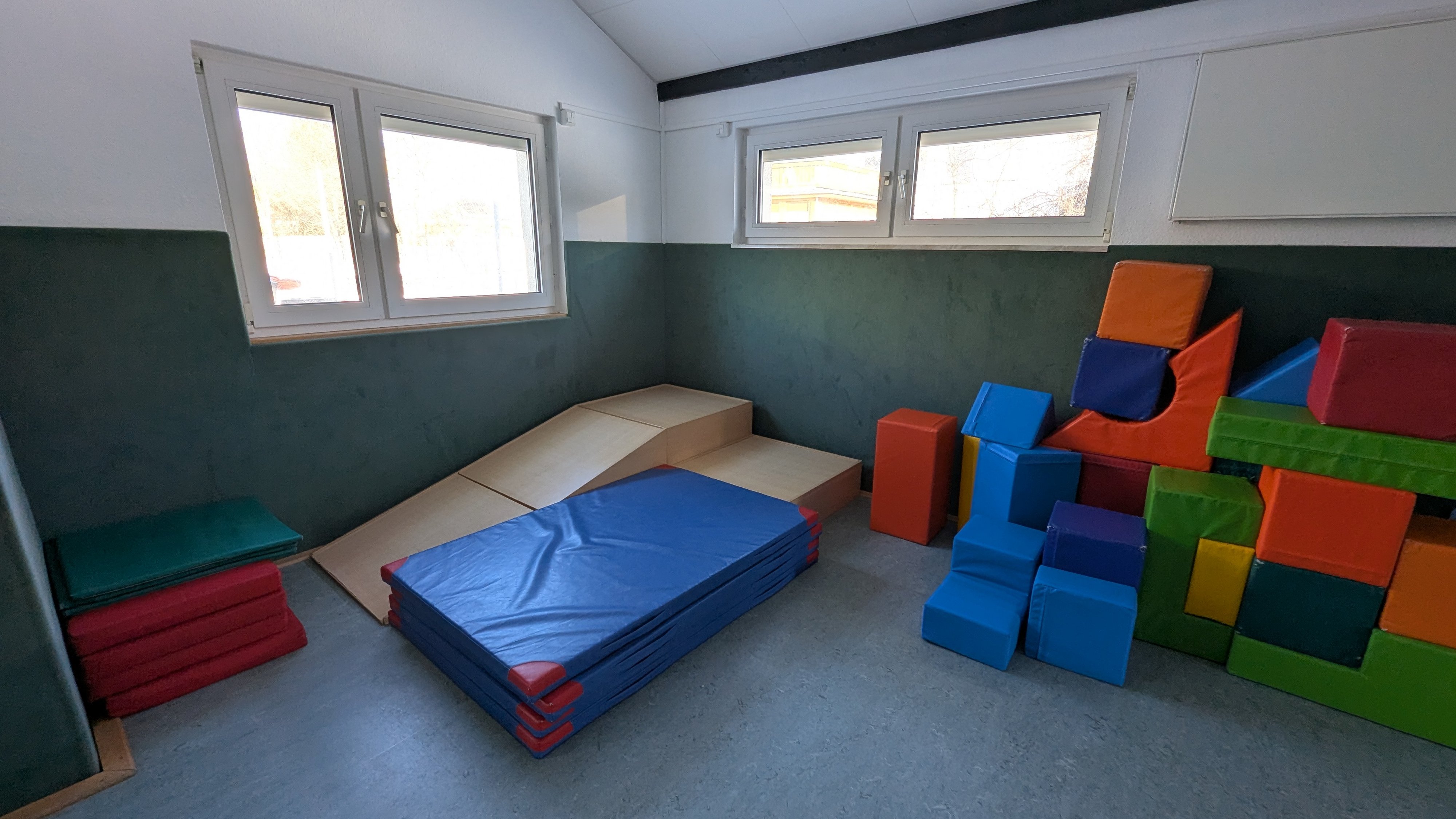 Freitags ist der Bewegungsraum für die Therapieeinheiten der Integrativkinder vorgesehen.