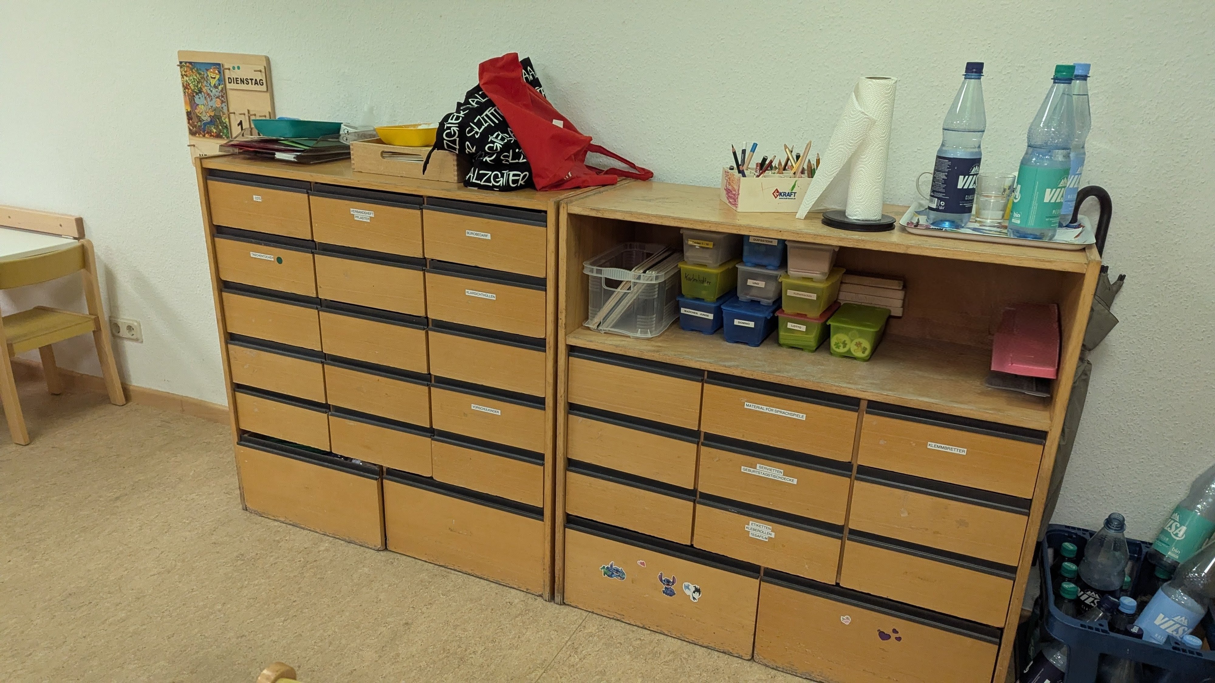 Wickelkinder bei den Spatzen nutzen je nach Bedarf und Verfügbarkeit den Wickeltisch im Waschraum der Katzengruppe oder der Bärchengruppe.