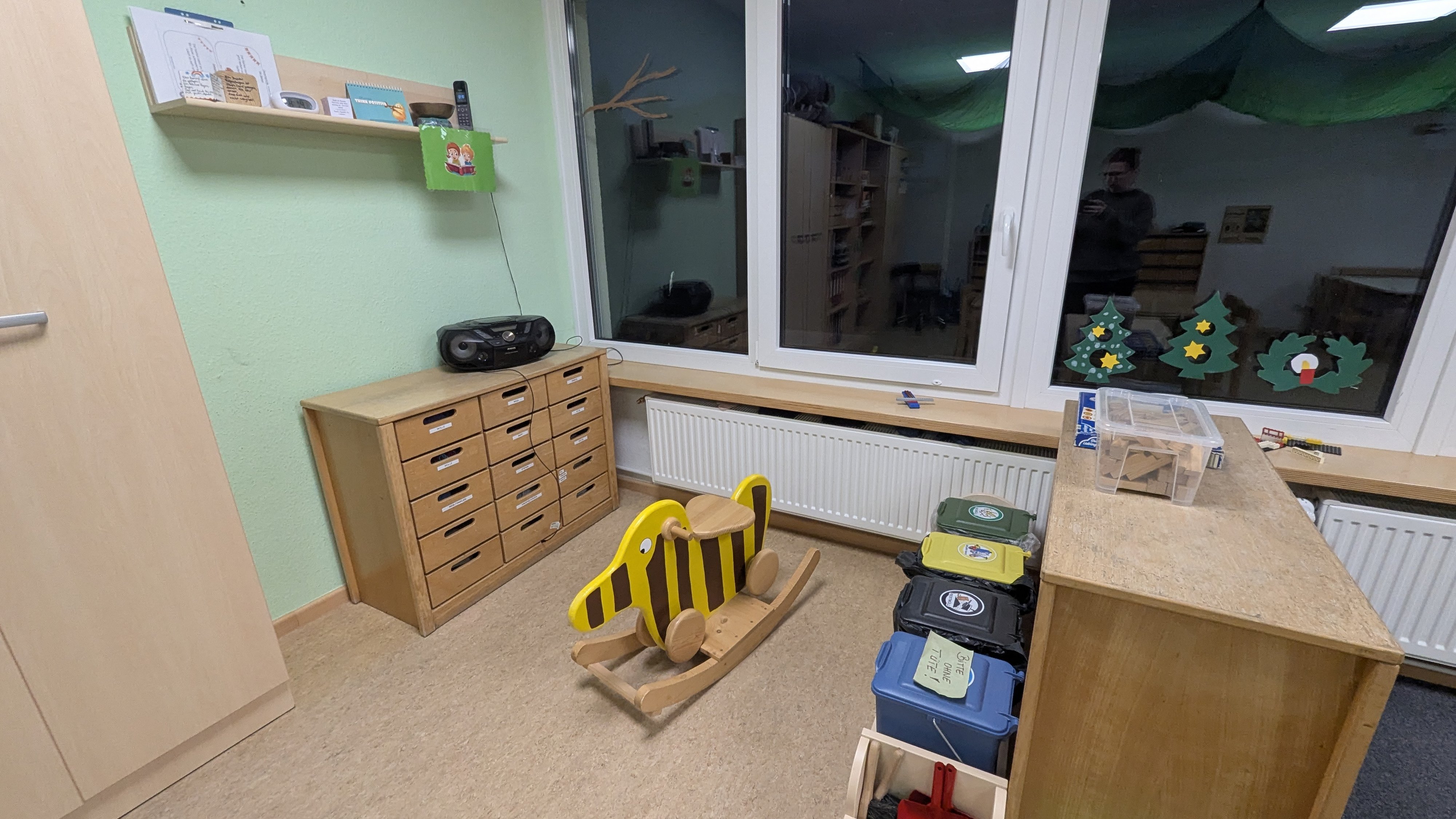Der Waschraum der Spatzen liegt direkt gegenüber der Gruppe.